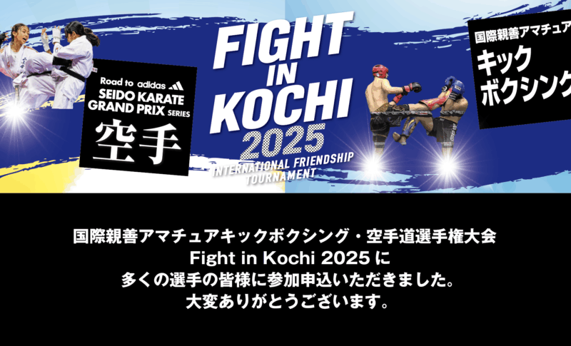 国際親善アマチュアキックボクシング・空手道選手権大会 Fight in Kochi 2025に 多くの選手の皆様に参加申込いただきました。 大変ありがとうございます。